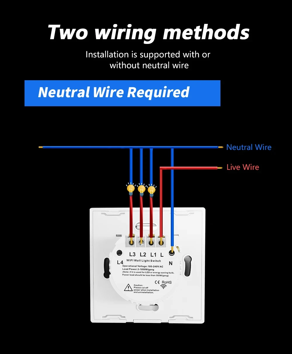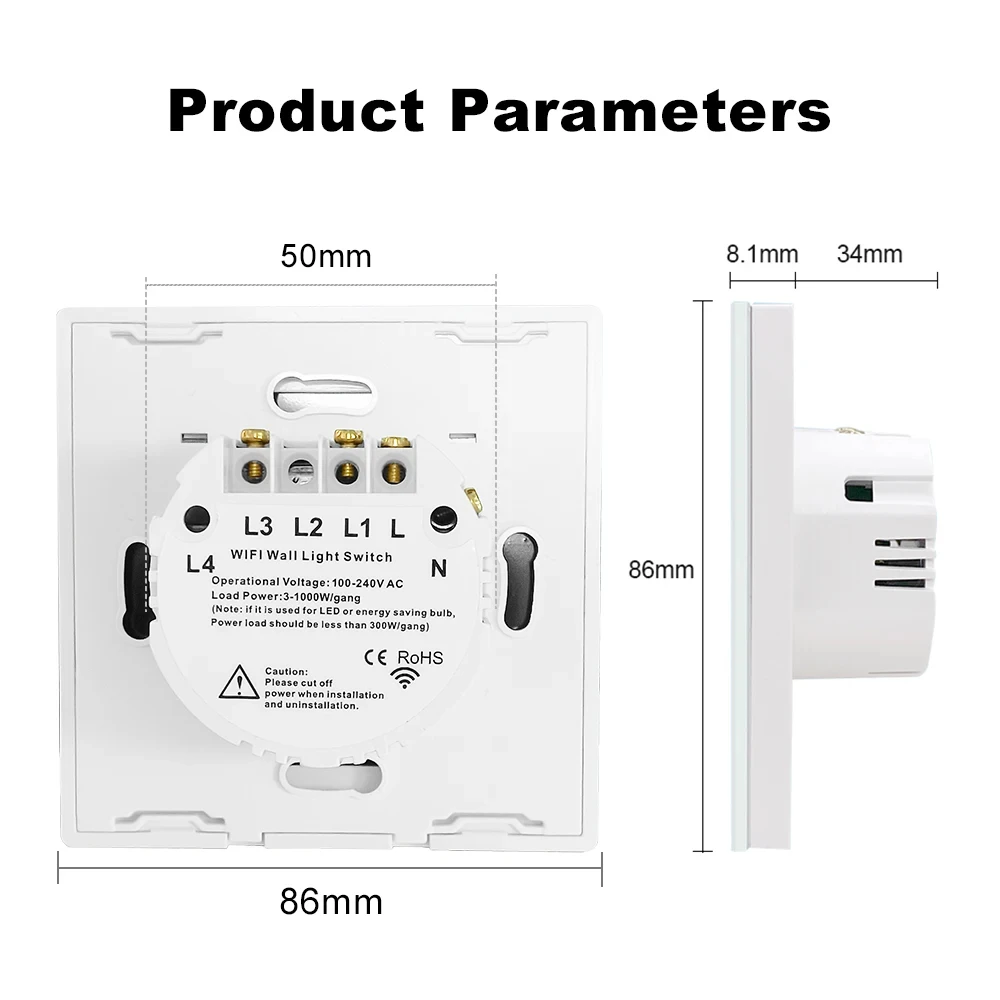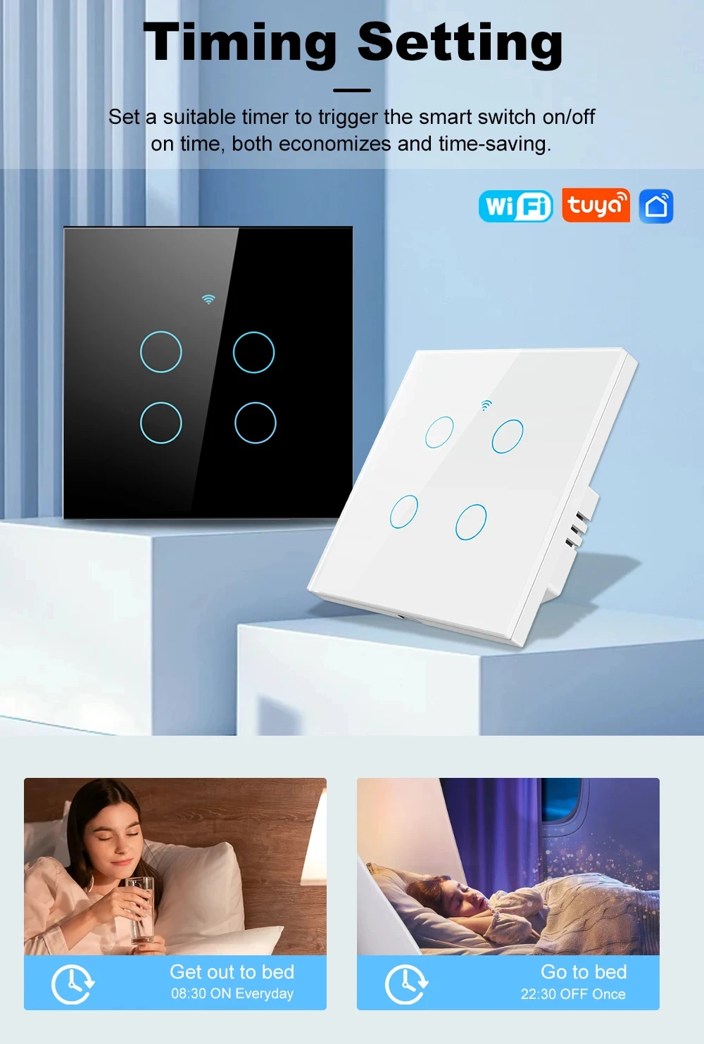 1 2 3 4 Gang WiFi RF 433mhz Touch Wall Light Smart Wireless with Switch Button 220V with no Neutral EU Tuya Alexa Google